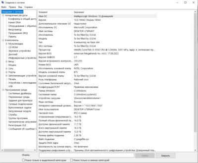 Либо нажимаем "Пуск" и начинаем набирать "Сведения о системе", либо "Выполнить" и там вводим msinfo32.