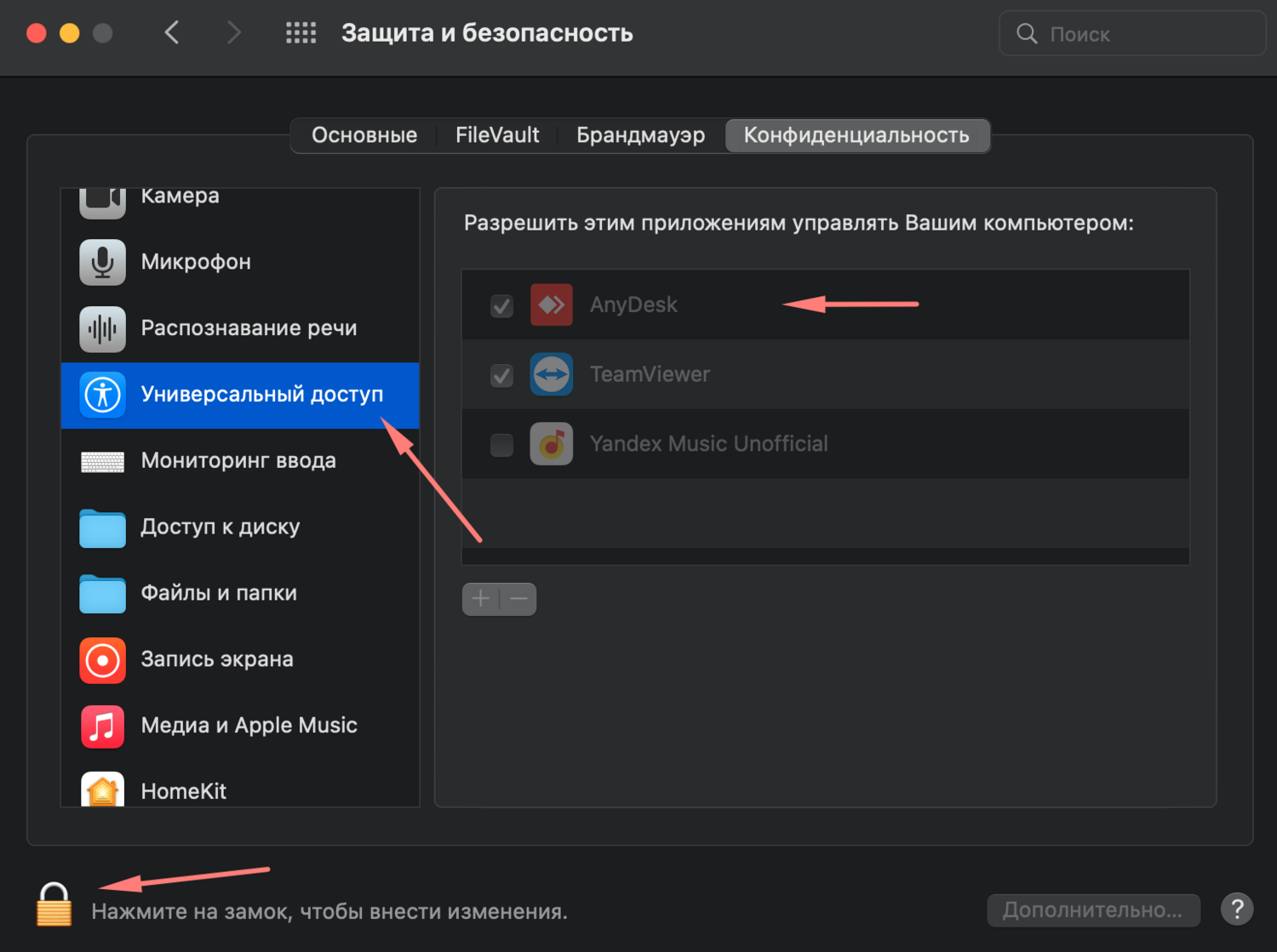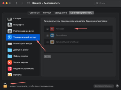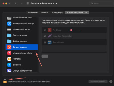 При подключении к AnyDesk, установленном на MacOS, выходит эта ошибка: "Отсутствует право доступа на съемку экрана AnyDesk". Для подключения к компьютеру на MacOS нужно сделать следующее: