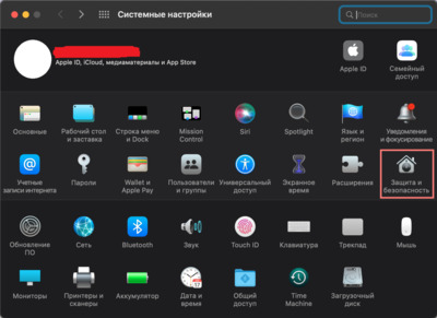 "Меню" - "Системные настройки" - "Конфиденциальность и безопасность".