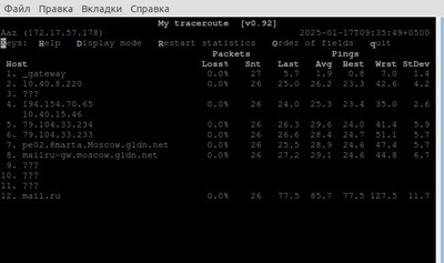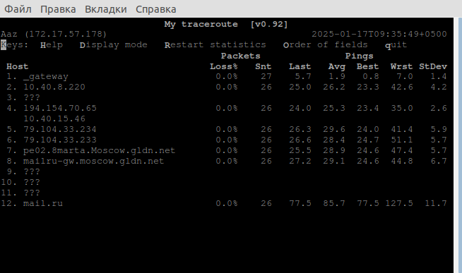 Мне лично понравилась больше утилита mtr. Если не запустится, то сначала эту утилиту нужно установить: