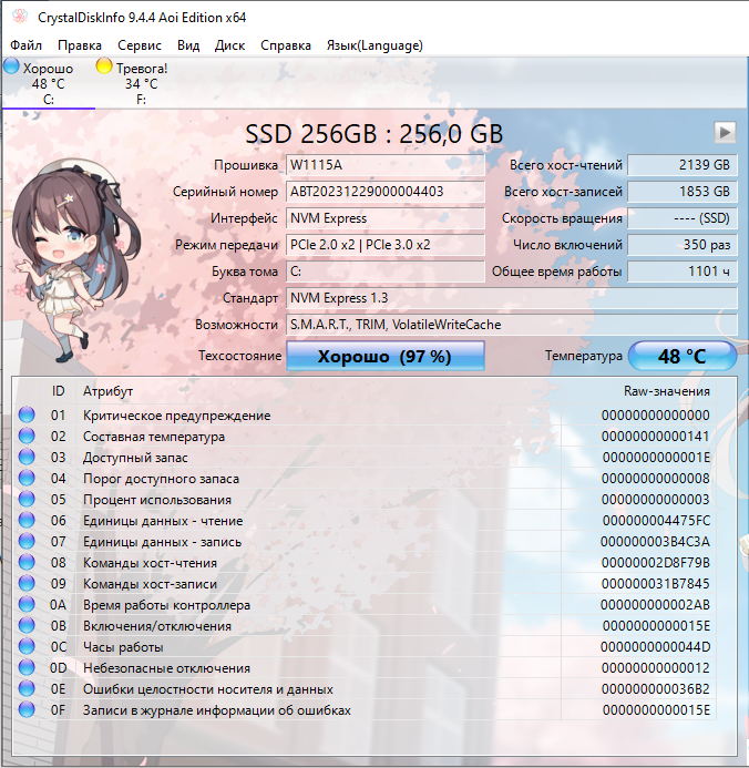 CrystalDiskInfo, бесплатная утилита, не требующая установки.